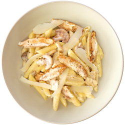 INGREDIENTE:paste, crema de gatit, crema trufe, piept pui, ciuperci, emmentaler, parmezan.