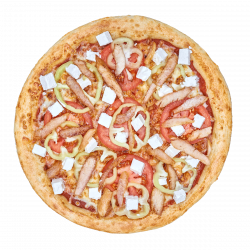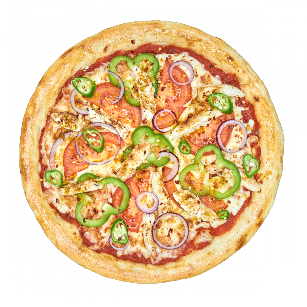 INGREDIENTE:blat, sos pizza, mozzarella, piept pui, ardei, gras, ceapa, rosii, chili, curry.