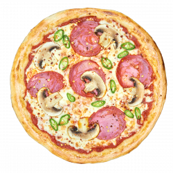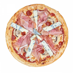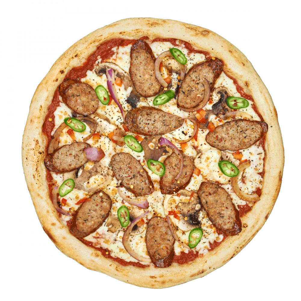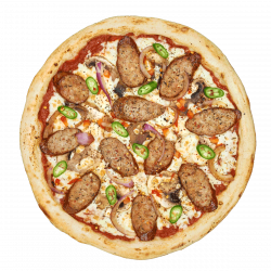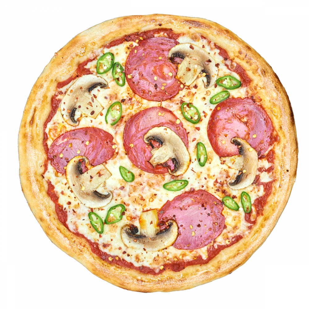 INGREDIENTE:blat, sos pizza, mozzarella, carnati porc, ciuperci, ardei iute , ceapa, chili .
