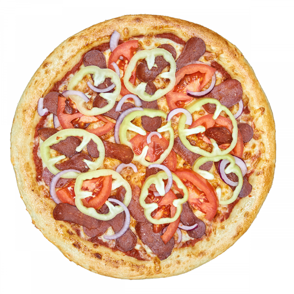 INGREDIENTE:blat, sos pizza, mozzarella, sunculita ardeleneasca, carnaciori, ardei gras, ciuperci, ceapa.