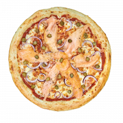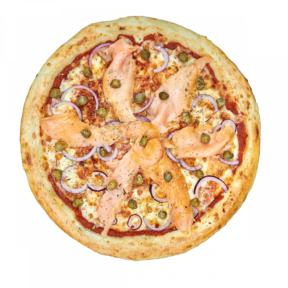 INGREDIENTE:blat, sos pizza, mozzarella, creveti, rosii cherry, ardei gras, lamaie, oregano .